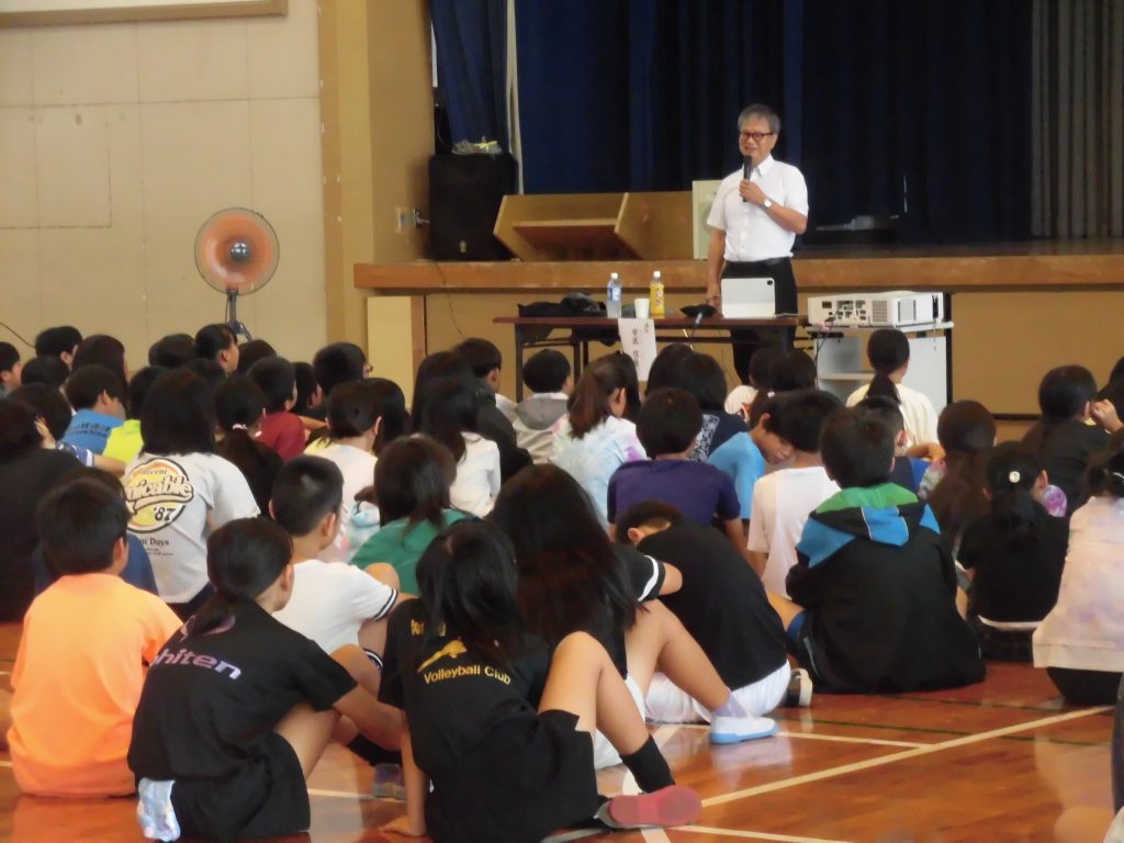 実施概要 ◆主催: うるま市教育委員会「魅力ある学校づくり」事業 栄養教諭グループ ◆日時: 2025年10月8日(水) ① 11時25分~12時10分 ② 13時55分~14時40分 ◆会場: ①うるま市立宮森小学校/ ②うるま市立城前小学校 ◆講師: 安武 信吾 氏 ◆演題: 食べることは生きること。-はなちゃんのみそ汁が教えてくれたこと― ◆参加者:①56年生、教職員、保護者 145名 ②全児童、教職員、保護者名 405名